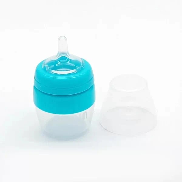 Newborn silicone feeding Bottle can be used as a baby water bottle, juice feeding bottle, breast milk storage bottle, and medicine feeder bottle. Its Slender shape nipple cab is easily put into the baby?s mouth and helps babies who have trouble with feeding to swallow easily. The soft bottle allows the feeder to squeeze slightly and help the flow of liquid. Air-valve design balances the air and milk circulation in the bottle to reduce the cause of air ingestion.